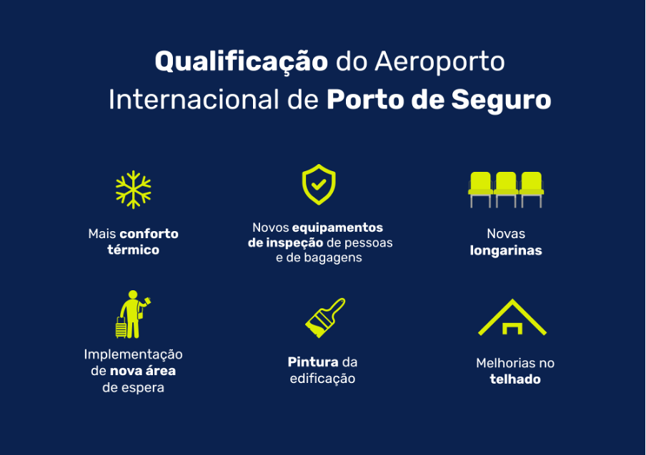 O Aeroporto Internacional de Porto Seguro, sob gestão da Socicam, está recebendo um pacote de investimentos que tem como objetivo ampliar o conforto e a eficiência na experiência de passageiros e visitantes. Desde fevereiro de 2025, quando a concessionária assumiu a gestão do empreendimento, diversas melhorias já foram concluídas e novas intervenções seguem em andamento para modernizar a infraestrutura e qualificar os serviços oferecidos.